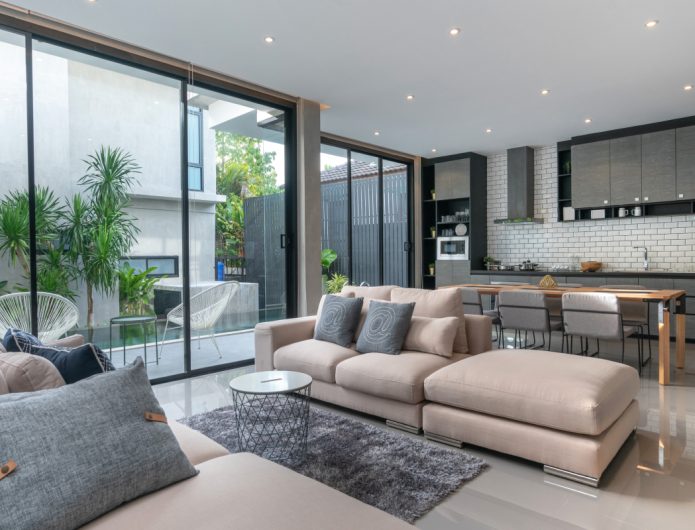 Enchanting three bedroom, three bath home with spacious one bedroom, one bath cabana, in-laws quarters. Charming living area features fireplace and fabulous art deco details. Formal dining room.